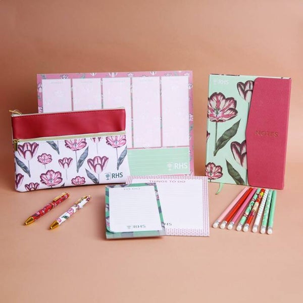 Dit notitieboek met magnetische sluiting is geïnspireerd op de RHS Lindley-collecties en heeft een formaat van ongeveer A5. Het heeft een prachtig tulpenontwerp en is perfect voor alle leeftijden, voor werk, school en thuis.