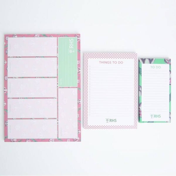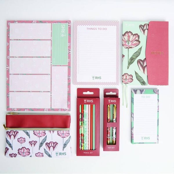 Deze set van drie blokken met tulpenmotief is geïnspireerd op de RHS Lindley-collectie en is perfect om je leven, huis, werk en studie perfect te organiseren!