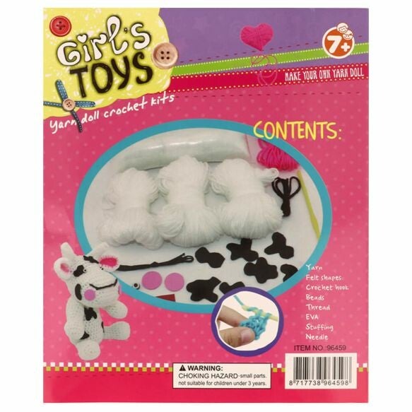 Maak uw eigen knuffelige koe met dit leuke amigurumi haakpakket dat speciaal gemaakt is voor kinderen! Elk pakket bevat garen, stukken vilt, kunststof haaknaald, kralen, draad, stukken EVA foam, kunststof naald en vulling. Geschikt voor kinderen ouder dan 7 jaar.