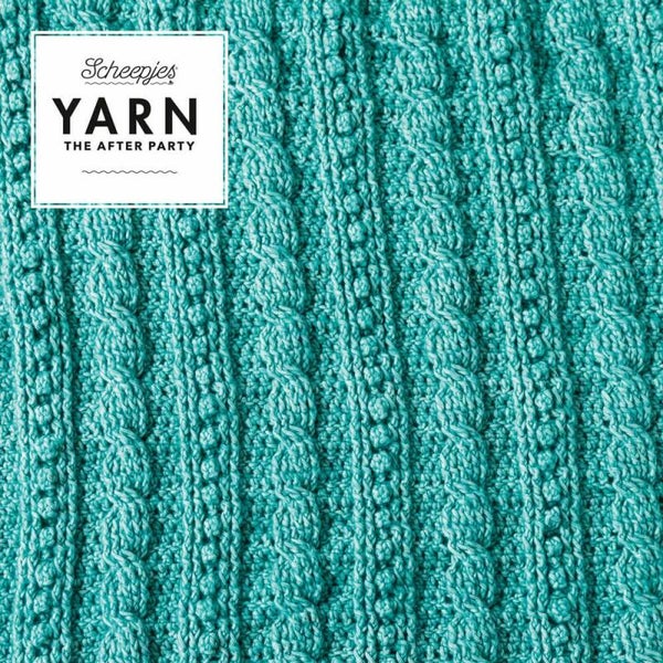 Deze 24e editie van YARN The After Party beschrijft de Popcorn & Cables Blanket, ontworpen door Ali Campbell. Voor dit ontwerp gebruikt u 34 bollen Scheepjes Stone Washed XL (in het voorbeeld is 855 Green Agate gebruikt). De deken wordt gehaakt met haaknaald 6.00mm.