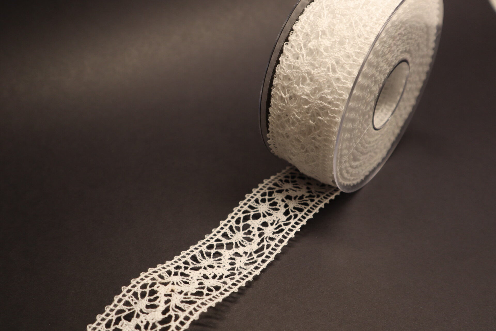 1 cm breed, in wit of creme, 1 euro per meter.2 cm breed, in wit of creme, 1,50 euro per meter.4 cm breed, wit, 2,25 euro per meter.