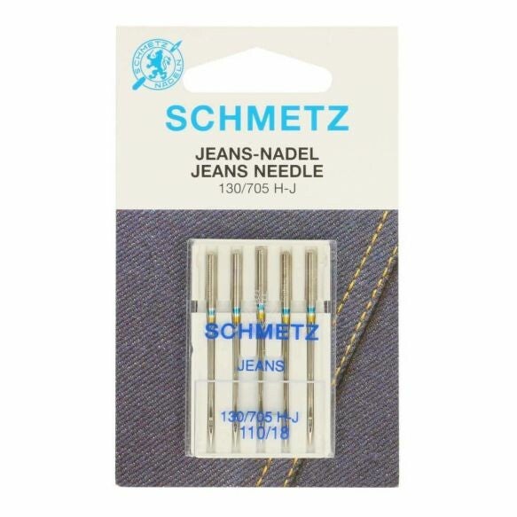 De Schmetz jeans naalden zijn speciaal ontworpen om extra dik (gewoven) materiaal te naaien op uw naaimachine, zoals denim, quilten en kunstleer. Dankzij de aangepaste medium ball-point punt en versterkte naaldschacht breken deze naalden minder snel en wordt het overslaan van steken voorkomen.