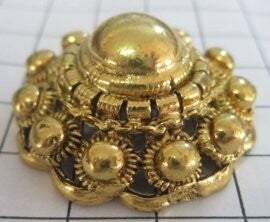 Zeeuwse Knop hanger verguld. Gefotografeerd op ruitjespapier 1 cm, zo kunt u de grootte makkelijk bepalen. ongeveer 35mm