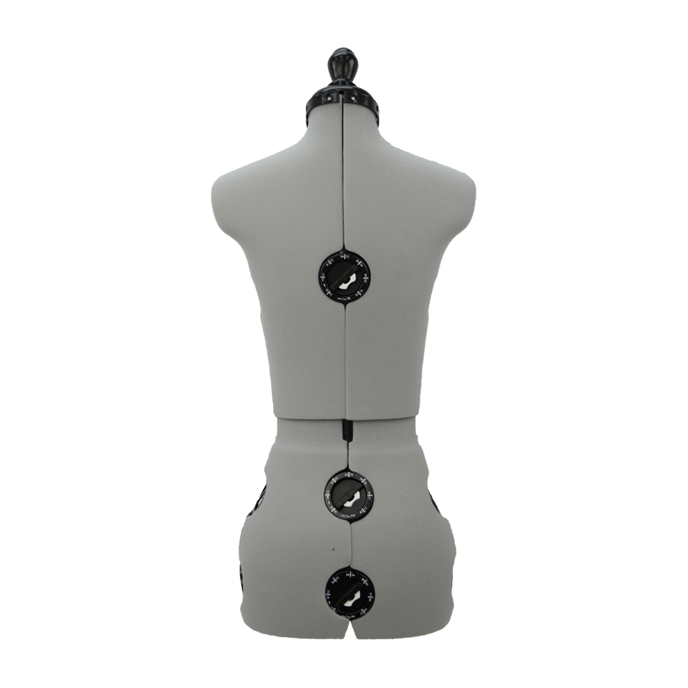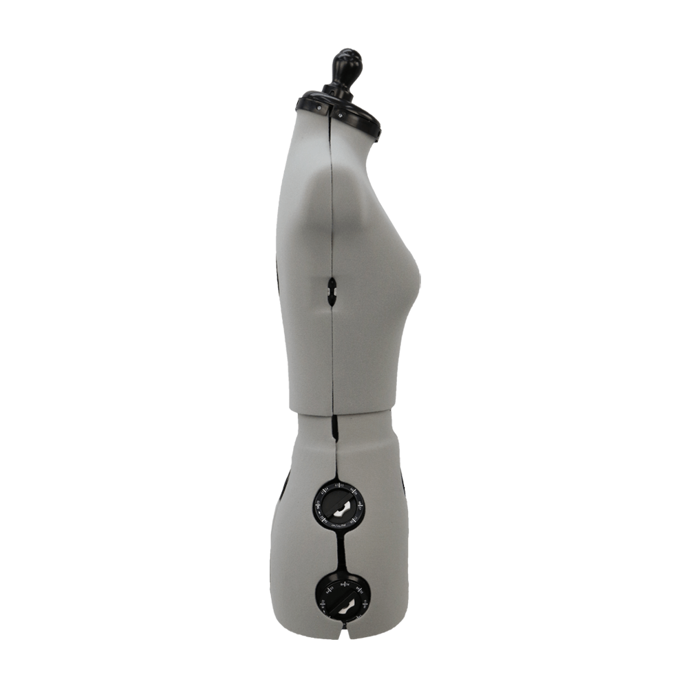 Deze mooie, grijze paspop is door de individueel instelbare maatknoppen aan de buste, taille en heupen in te stellen voor elk figuur. De voorgevormde schouders zorgen voor mouwen die goed vallen. Je bent verzekerd van het spelden van een kaarsrechte zoom met behulp van de ingebouwde rokmeter. De paspop staat op een stabiele voet en is gemakkelijk te monteren.