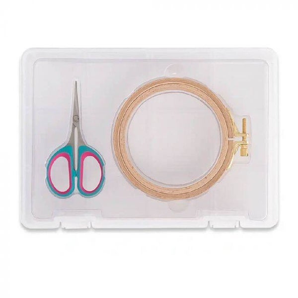 Deze Prym Love Startersset Borduren is het ideale cadeau voor iedereen die met borduren wil beginnen en ook meteen van start wil gaan. De set bevat een opbergdoos met een volledig basisassortiment aan borduurbenodigdheden, zoals tien borduur- en maasnaalden in handige naaldenkoker (zie art.nr. 125.640), een Aqua-Trick marker (wateroplosbare markeerstift), een draaddoorhaler voor borduurnaalden (zie art.nr. 611.174), een professioneel borduurschaartje (zie art.nr. 610.544), een houten borduurring van 10cm doorsnee, een tomaatvormig speldenkussentje (zie art.nr. 611.321), een garenorganizer voor het overzichtelijk opbergen van draden borduurgaren en een flyer met instructies voor vier veelgebruikte borduursteken. De opbergdoos van transparante kunststof bestaat uit twee verdiepingen en is 23,5cm lang x 17 cm breed.